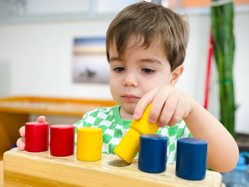 En un entorno seguro y afectivo, acompañado por Guías especializadas, el niño desarrolla sus sentidos, su independencia y sus primeras habilidades sociales mediante materiales Montessori, especialmente de vida práctica.